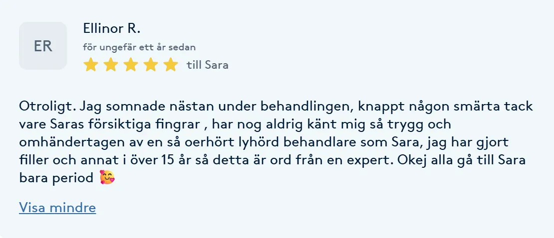 Din säkerhet är vår högsta prioritet. Våra behandlingar utförs av legitimerade och certifierade experter med gedigen erfarenhet inom estetiska behandlingar. Detta gör att du kan känna dig trygg med att du alltid får högkvalitativ vård och att dina skönhetsmål hanteras med hög professionalism och precision.